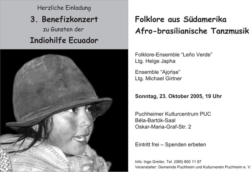Alle Musiker waren gekommen, die Indiohilfe Ecuador zu unterstützen (haben also auf jegliches Honorar verzichtet). Die etwas über 400 Zuhörer dankten es ihnen mit reichlichem Applaus und großer Spendenfreudigkeit.